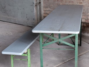 German Beer Festival Folding Trestle Set Being sold in good vintage condition. Nicely aged and distressed from general use. Ideal for garden, patio, cafe, pub & restaurant use seat up 8-10 (2 sets available at the time of listing) Dimensions H: 77cm (30.31in) W: 220cm (86.61in) D: 50cm (19.69in)Style / Period20th Century VintageRefZX9934 ENQUIRE ABOUT THIS ITEM £245.00StatusAvailable